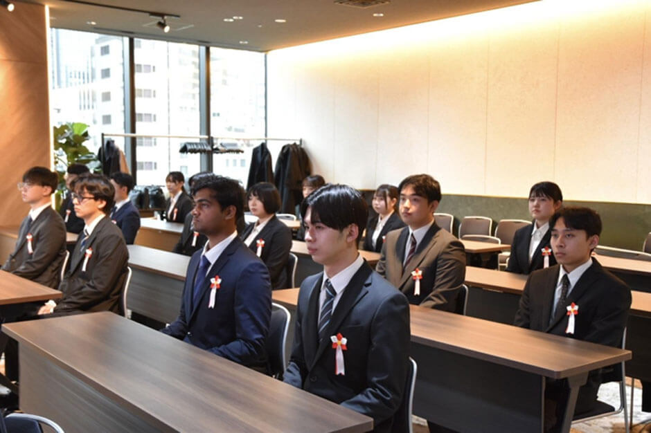 真剣な眼差しで言葉に耳を傾ける新入社員たちの姿からは、社会人としての自覚と、これから始まる日々への意気込みが伝わってきました。