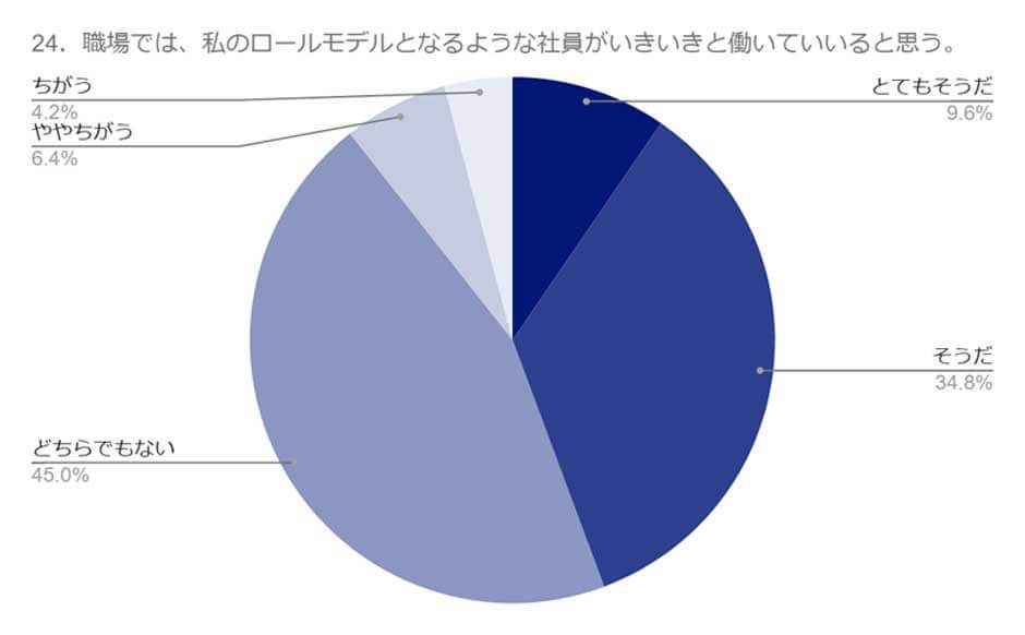 - 「職場では、私のロールモデルとなるような社員がいきいきと働いていると思う」:44.4%