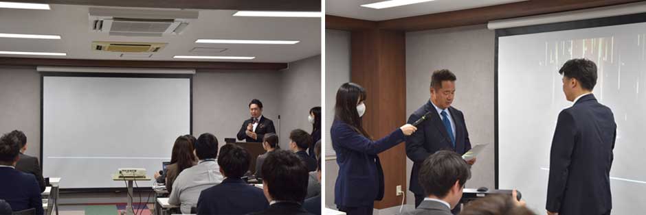 営業表彰式では、毎年半期ごとに優れた成績を収めた従業員を表彰しています。
